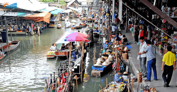 Tham quan chợ nổi ở Damnoen Saduak: Damnoen Saduak là khu chợ nổi nằm ở tỉnh Ratchaburi, Thái Lan. Chợ là một nơi tuyệt vời để trải nghiệm văn hóa Thái Lan và mua quà lưu niệm.