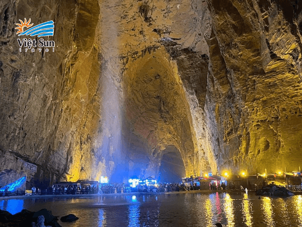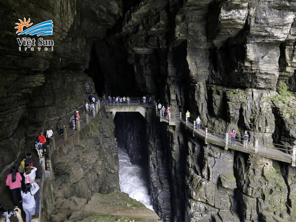 Sông ngầm kỳ bí: Bên trong hang động là một dòng sông ngầm chảy xiết, tạo nên những âm thanh kỳ ảo và cảnh quan ngoạn mục.