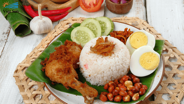 Nasi Lemak là một món ăn đặc trưng của Malaysia, trong đó cơ sở của món ăn là gạo nếp được nấu cùng với nước dừa, thường được phục vụ với các nguyên liệu khác như thịt gà hoặc hải sản, trứng, rau thơm và nước chấm. Món ăn này có hương vị đậm đà, thơm ngon và cay nồng, với vị ngọt của nước dừa và cay của nước chấm. Đối với món Nasi Lemak các bạn có thể thưởng thức vào bất kỳ thời điểm nào trong ngày, từ bữa sáng đến bữa tối, và thường được bán tại các quán ăn đường phố và nhà hàng ở Malaysia.