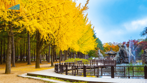 Khi mùa thu về, Đảo Nami biến thành bức tranh màu vàng rực rỡ bởi hàng ngàn cây phong rơi rụng. Bạn sẽ có cảm giác như đang lang thang trong một cõi tiên, nơi mà cảnh sắc tươi đẹp vô cùng ảo diệu.