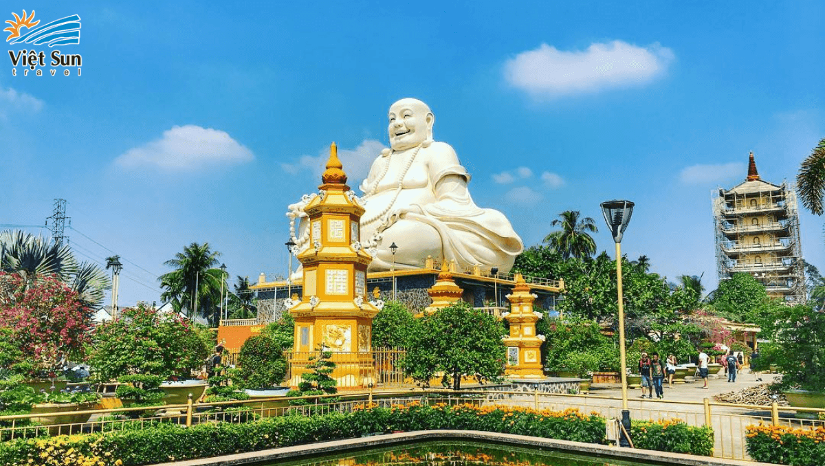 Chùa SomRong: Chùa tượng Phật nằm lớn nhất Việt Nam mang kiến trúc nổi tiếng của người Khmer.