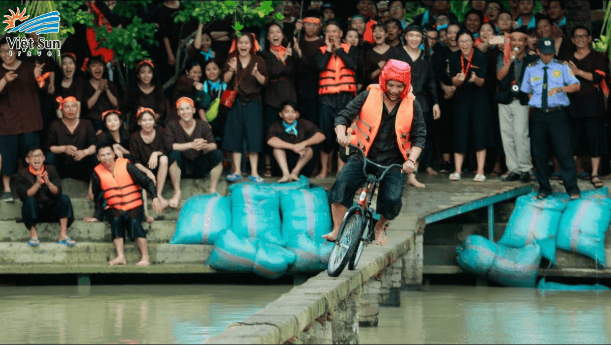 Đoàn đến Khu du lịch sinh thái Việt Nhật dùng cơm trưa. Quý khách có thể tham gia chơi các trò chơi hoàn toàn miễn phí như đi xe đạp qua cây cầu, chèo thuyền tại rạch nước, đu dây, đi bộ cầu khỉ và nhiều trò chơi hấp dẫn mới lạ. Sau đó, quý khách về lại đất liền, khởi hành đi Cần Thơ.