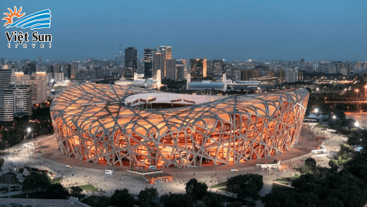 Tham quan và chụp hình lưu niệm tại Sân vận động tổ chim – nơi diễn ra lễ khai mạc và bế mạc Olympic Bắc Kinh 2008 (Chụp hình bên ngoài).