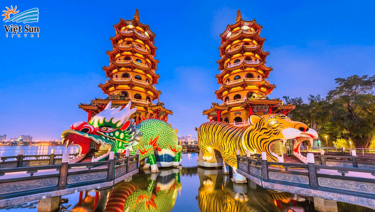 Nhật Nguyệt Đàm: Quý khách ngồi du thuyền ngắm phong cảnh hữu tình, thấp thoáng những kiến trúc cổ của Trung Hoa tạo nên vẻ yên bình cho hồ Nhật Nguyệt khiến lòng người thanh thản. Bốn bề được bao bọc bởi núi non điệp trùng, đem lại cảnh đẹp hùng vĩ và thơ mộng, từng là điểm nghỉ dưỡng ưng ý nhất của Tưởng Giới Thạch.