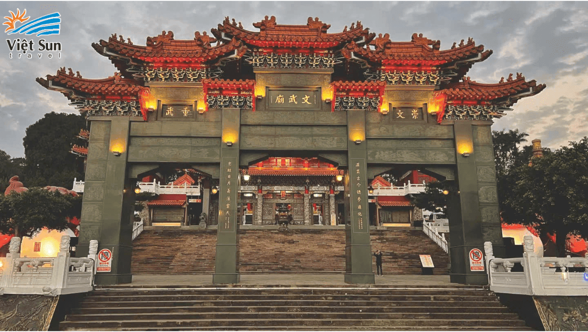 Miếu Văn Võ: Nằm ở phía bắc hồ Nhật Nguyệt với tượng sư tử đỏ to lớn uy nghi trấn cửa. Bên trong Văn Miếu thờ Khổng Tử và hai đồ đệ của ông, là Mạnh Tử và Tuân Tử. Phía dưới là Võ Miếu thờ Quan Công và Nhạc Phi - một danh tướng yêu nước thời Nam Tống