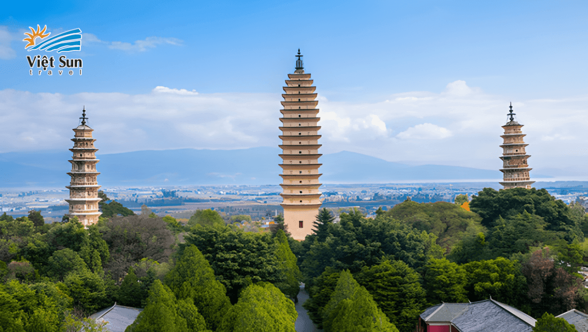 Tam Tháp: là một quần thể kiến trúc cổ kính và là biểu tượng Phật giáo nổi tiếng ở Vân Nam. Quần thể này bao gồm ba ngọn tháp: tháp Thiên Thuần (cao nhất 61.7m), tháp Phước Thọ (42m) và tháp Phước Tuệ (39m). Cả ba tháp đều có kiến trúc độc đáo, mang đậm phong cách Trung Hoa cổ điển và được xem là những di sản văn hóa quý giá. (ngắm từ xa)