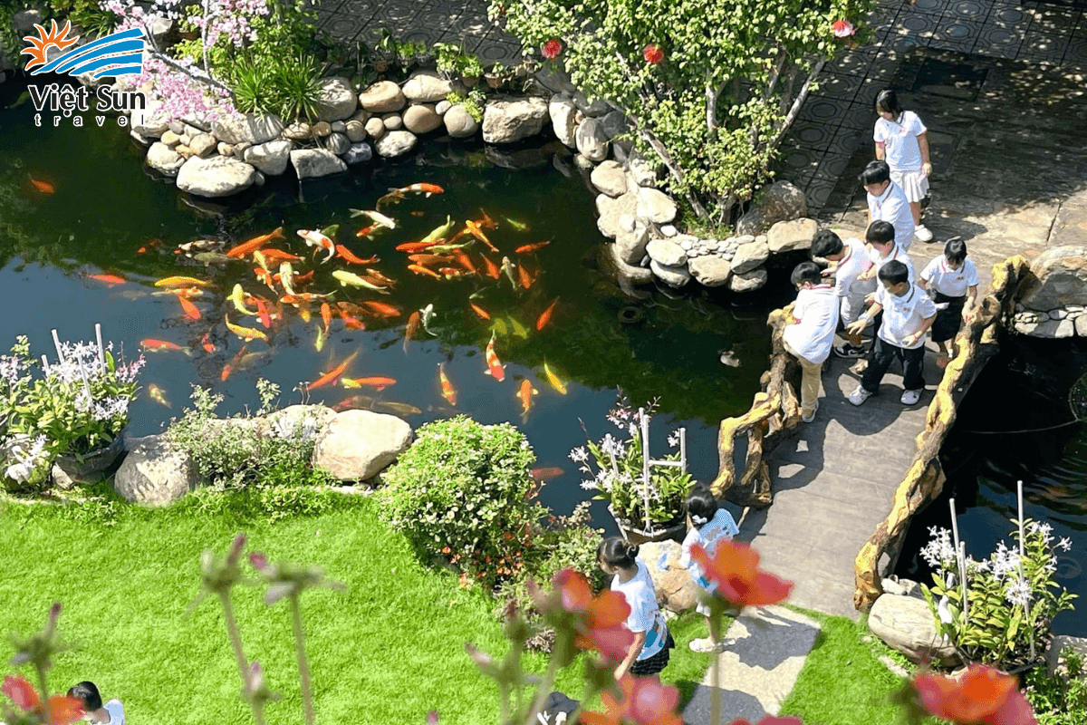 Chiêm ngưỡng hòn non bộ & hồ cá Koi: Các em được tìm hiểu nghệ thuật tạo hòn non bộ và chiêm ngưỡng những chú cá Koi đầy màu sắc.