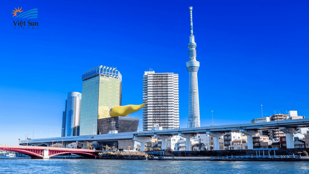 Tháp truyền hình Tokyo Sky Tree: được hoàn thành xây dựng từ năm 2012 với chiều cao siêu “khủng” lên tới 634m, đây là ngọn tháp truyền hình cao nhất đất nước mặt trời mọc và thế giới. Là một niềm tự hào của Nhật Bản (chụp ảnh bên ngoài).